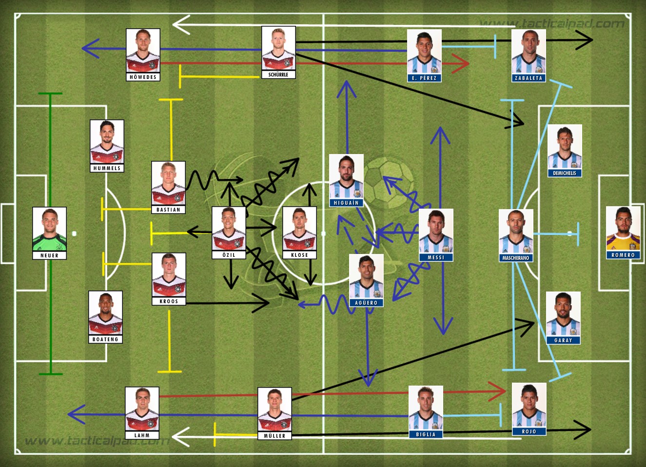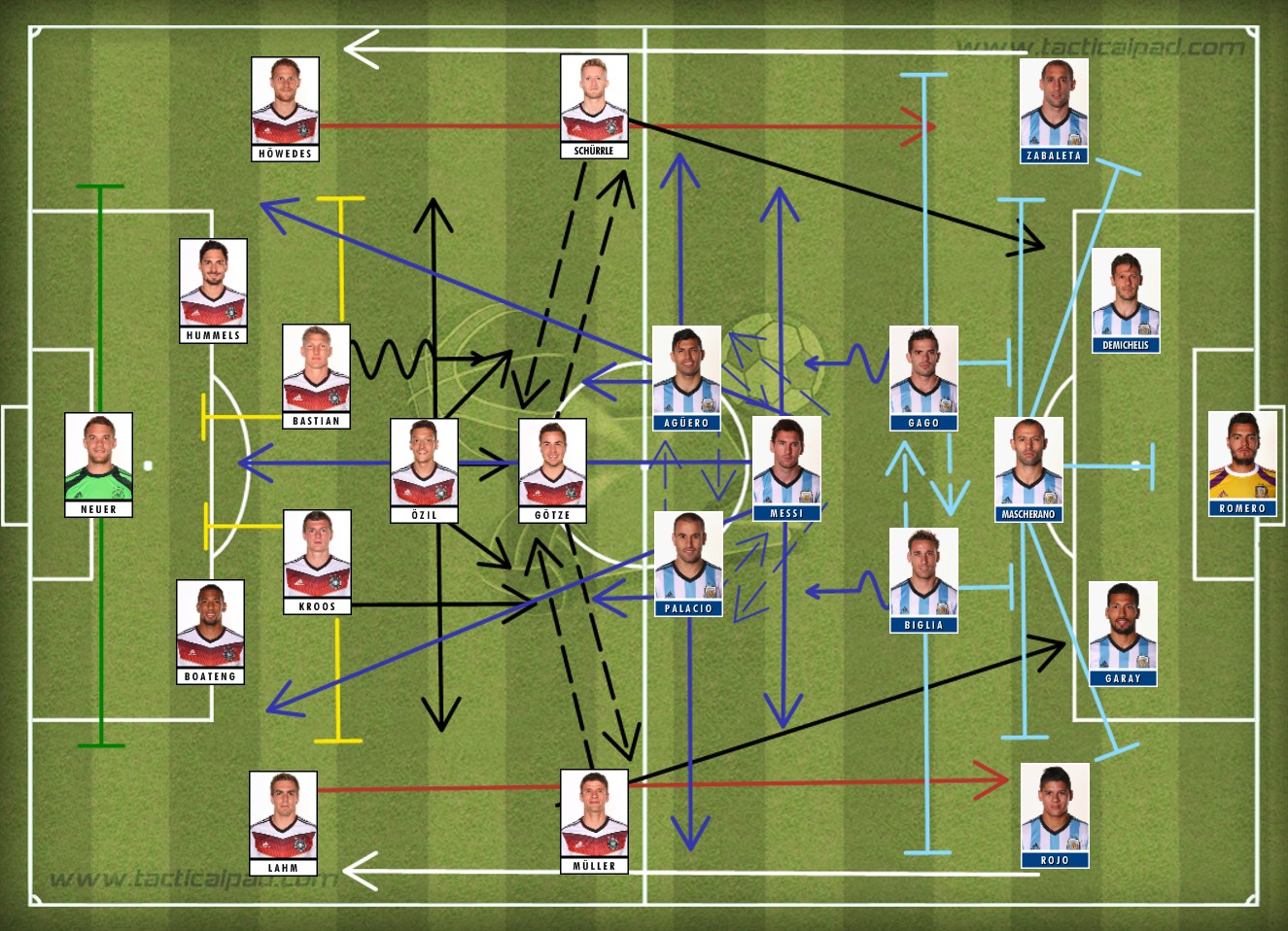 The Argentineans reverted to some long vertical play for a while in an attempt to catch Germany’s backline off-guard and hope to quickly break through on goal.